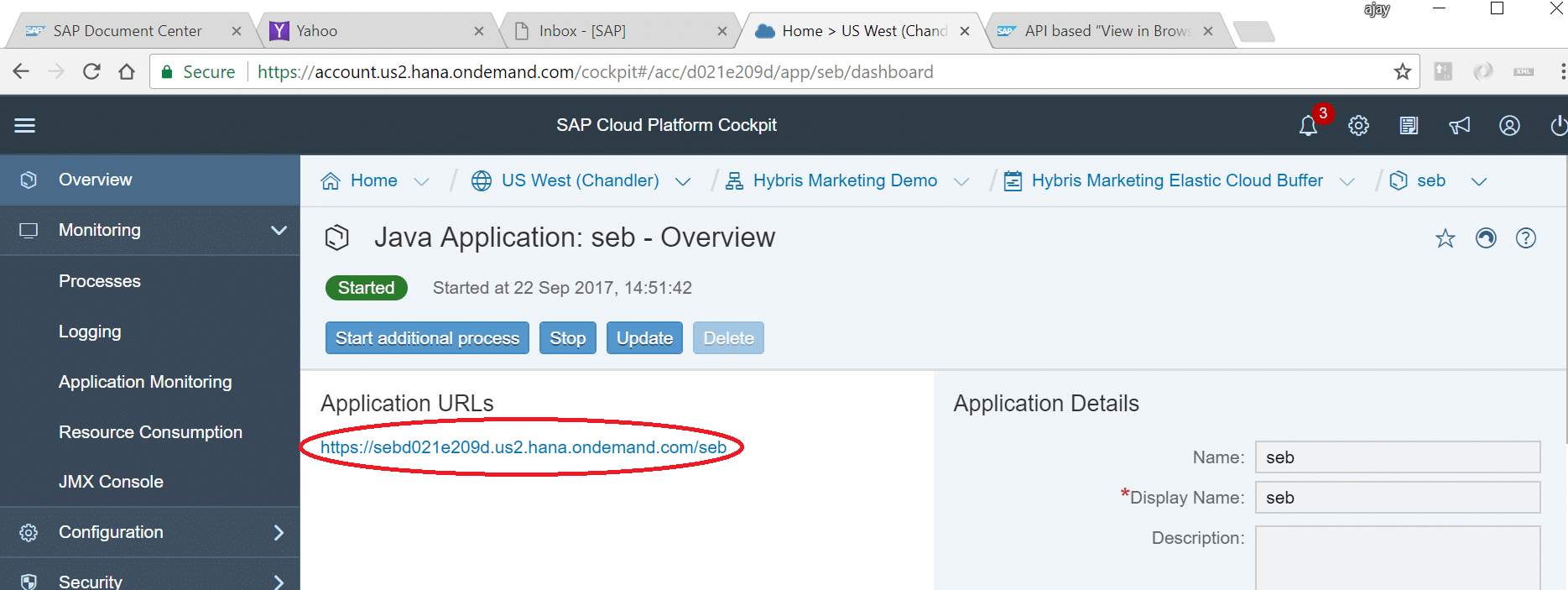 As a result now you have got the application URL to your servlet which we will use in the next step, inserting the View In Browser link into the marketing email. Communicate the URL to the user responsible for the email creation, e.g. via email.