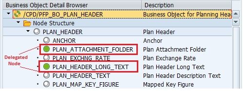 As highlighted in Figure 2, PLAN_HEADER_LONG_TEXT is a Delegated node in the Business Object /CPD/PFP_BO_PLAN_HEADER. This Node is linked to the Root node of the Dependent Business Object /BOBF/TEXT_COLLECTION.