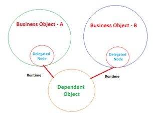 Business Objects will have several common properties such as address, text collection, attachments and etc. Instead of maintaining these properties in a node of all BO separately, we can create one Dependent Business Object which can be reused by all the Business Objects during run-time.