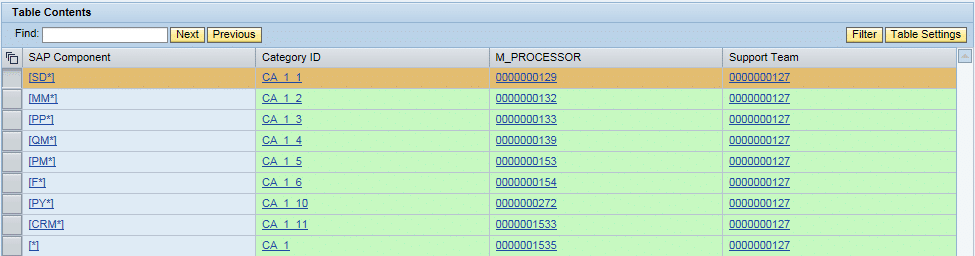For the above requirements, the result should be = CATEGORY ID, MESSAGE PROCESSOR & SUPPORT TEAM based on the SAP COMPONENTS irrespective of the conditions on which it is going to be evaluated.Hence in the Function which we have copied from SUPPORT_TEAM, we have to adjust the signature.
