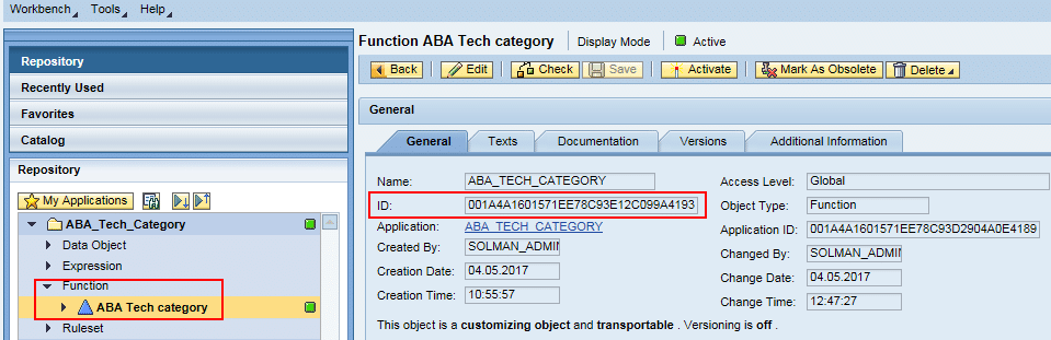 After taking a copy of this we have to edit this. In my case I have removed Category ID from the CONTEXT and added in the RESULT field. In the result, it is possible to have only One element. (Ex: Support Team is one element, Category ID is one element. We can have either of them and never both.). So for this, we need to create a STRUCTURE which will contain the three elements(CATEGORY ID, MESSAGE PROCESSOR and SUPPORT_TEAM) in my case. So when I assign this STRUCTURE (Single Element) in the RESULT, it will give me the output for CATEGORY ID, MESSAGE PROCESSOR and SUPPORT_TEAM.