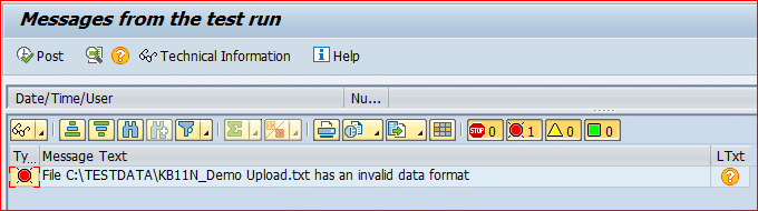 Some reasons for incorrect data could be missing User name as this is a mandatory field. Likewise, the Cost element should have 10 characters padded with Zero. The header records and line items records should be aligned properly through the Doc_No field. For example, if there is a line item only in header with a specific Doc_No and not in line item or vice-versa, the file could be rejected. So, one needs to scan the file carefully, if errors are encountered.