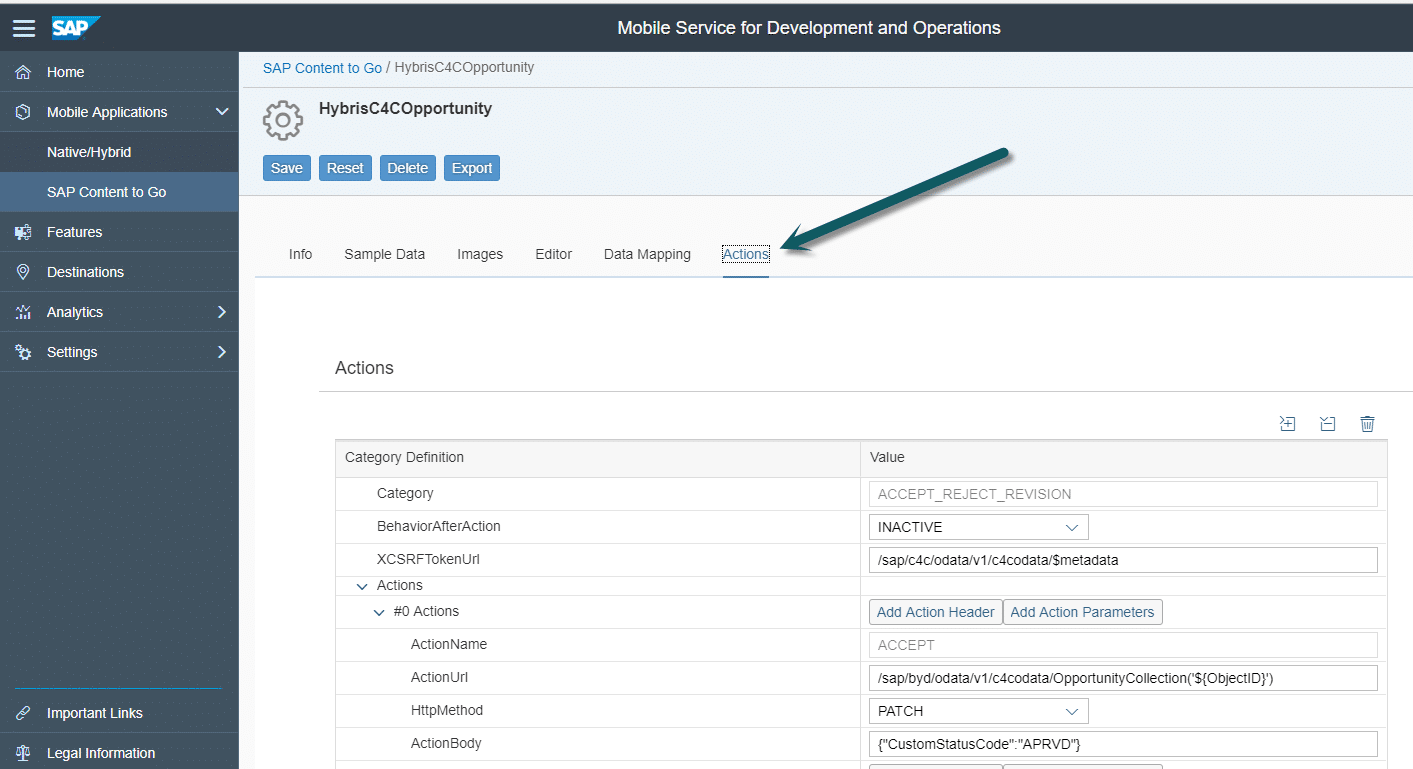 However, the location to define actions within the SAP Mobile Cards administration is different based on the action type you use. Below, I’ll explain the two types of actions and where/how you create them.