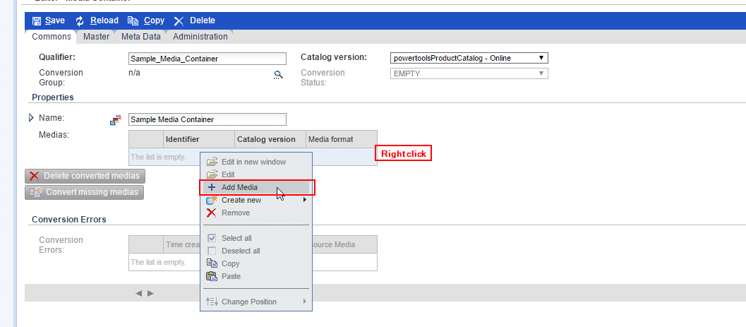 Creation of Media Container and linking it to a Product in SAP Hybris