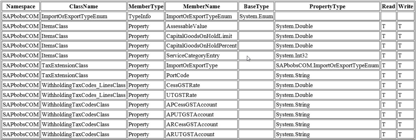 Note: A complete list about the methods/properties/Enums in a specific SAP Business One Version can be found here: