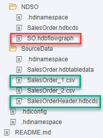 Important: There are two FlatFiles available which can easily be manipulated directly in SAP Web IDE by manually adding, deleting or changing records for testing purposes. Only the FlatFile ‘SalesOrder_1.csv’ is relevant for data loading. If the records are changed, they need to be transferred into a buffer table on the SAP HANA DB which serves in this scenario as the source to load the data into the NDSO with the flowgraph provided (SO.hdbflowgraph). Do not forget to execute a re-build of the ‘SourceData’ folder to update the data in the source table after having changed the FlatFile. This task is not done by the flowgraph.