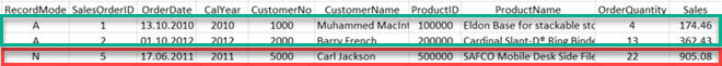 • one with Recordmode ‘N’ representing the delta (OrderQuantitiy = 6) loaded