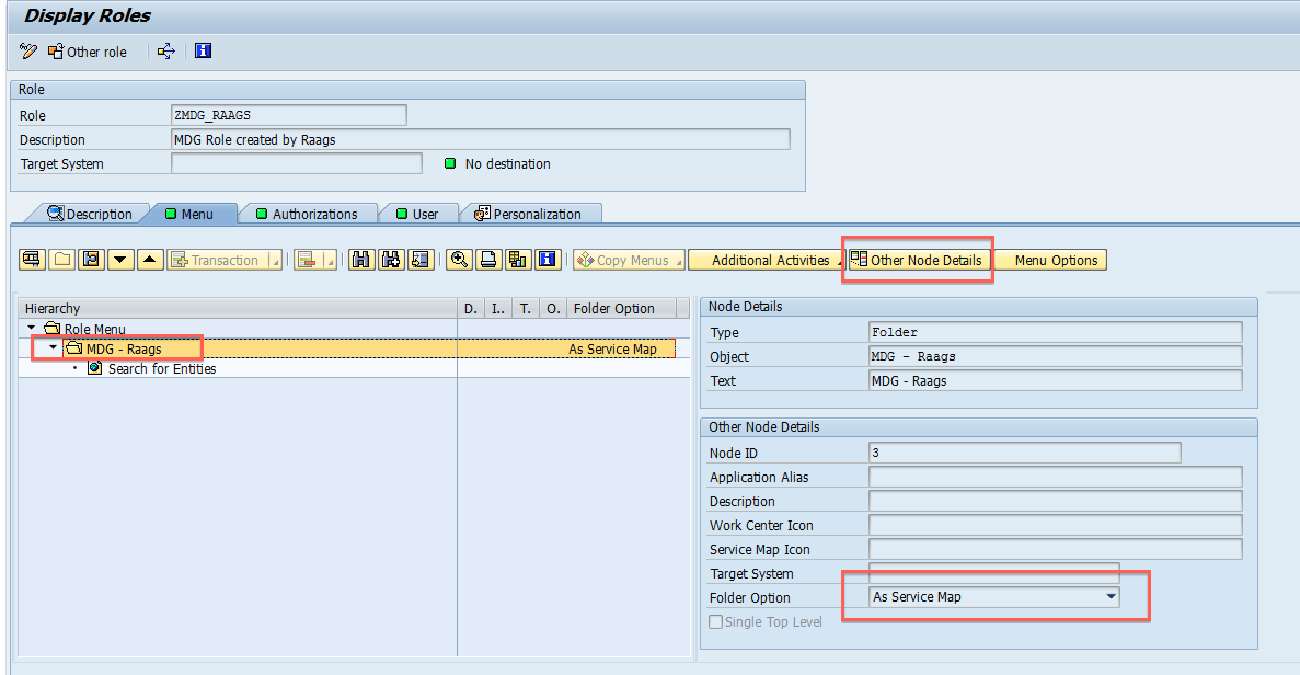 Step-2: Open your Role in edit mode. Step-3: Goto ‘Menu’ Tab. Step-4: Double click on the folder in which your views are defined. If no folder defined, then create one and move the views to this folder. Step-5: Click on ‘Other Node Details’ button Step-6: Select ‘Folder Option’ as ‘As Service Map’ Step-7: Save & Execute NWBC |