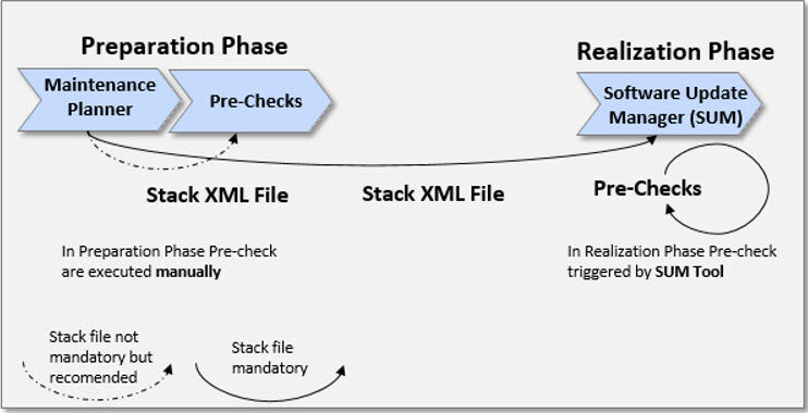 - It is recommended (not mandatory) to execute pre-checks based on the stack.xml file provided by Maintenance Planner. Using the stack.xml file would provide a more precise results during pre-checks