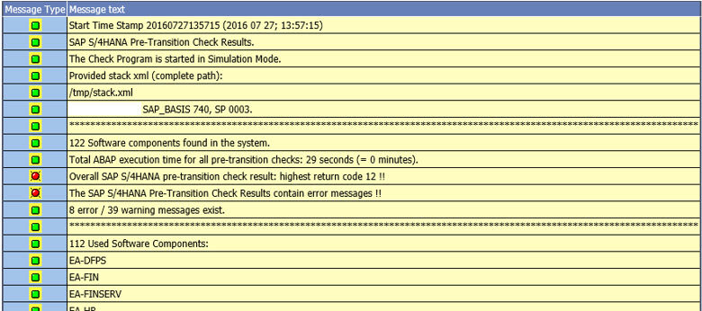 - The result of the pre-checks is provided as a list of items that the project needs to address in the source SAP ERP system before you start he conversion process