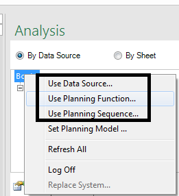 - Planning Sessions – Easy creation of What if Analysis with the use of buffers, users could use recalculate button in Analysis office tab for analyzing the data before finally submitting it SAP recommends use the Analysis Plug-In instead of the EPM Plug-In with BPC Embedded projects.