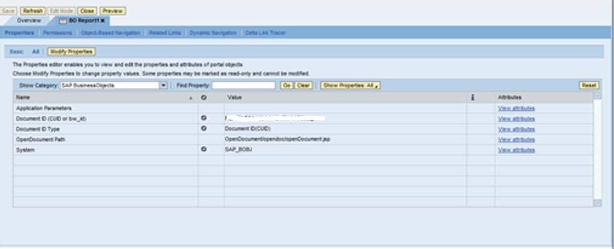 Step 6 – Create a System Object in the Portal using new system template: SAP BusinessObjects System Template and ensure that SSO is configured between the Portal and the SAP System mentioned in connector properties of System Object.