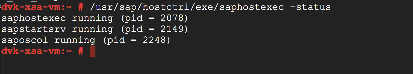 The prompt is returned in a matter of seconds, so it is good to realize that sapinit status informs us about the status of the sapstartsrv process (up, down), not whether the whole SAP HANA system is already up and running.