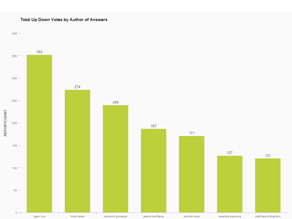 Following on from the blog above, I was having a discussion with Bartosz Jarkowski about being unable to collect the details of answers to the questions here on the SAP Community. He pointed out there was a way to get these answers (and questions ;)) on this site so I was intrigued and checked out the details he provided. I had already set up my SAP Cloud Platform trial account to retrieve information from the SAP Search API to get the statistics for the original blog above. So I simply adjusted the collection code to point it at this new source of information and adapted my HANA calculation view to include the data in my Lumira analysis below. I chose to only focus on the answers as I had already collected the questions as detailed above. So I kept the same data set of questions from 10th Oct 2016 to 30th April 2017 and now added the answers to these questions. I do comment on data quality at the end of the blog this time, but to point out the data is from publicly available sources only and not from SAP.